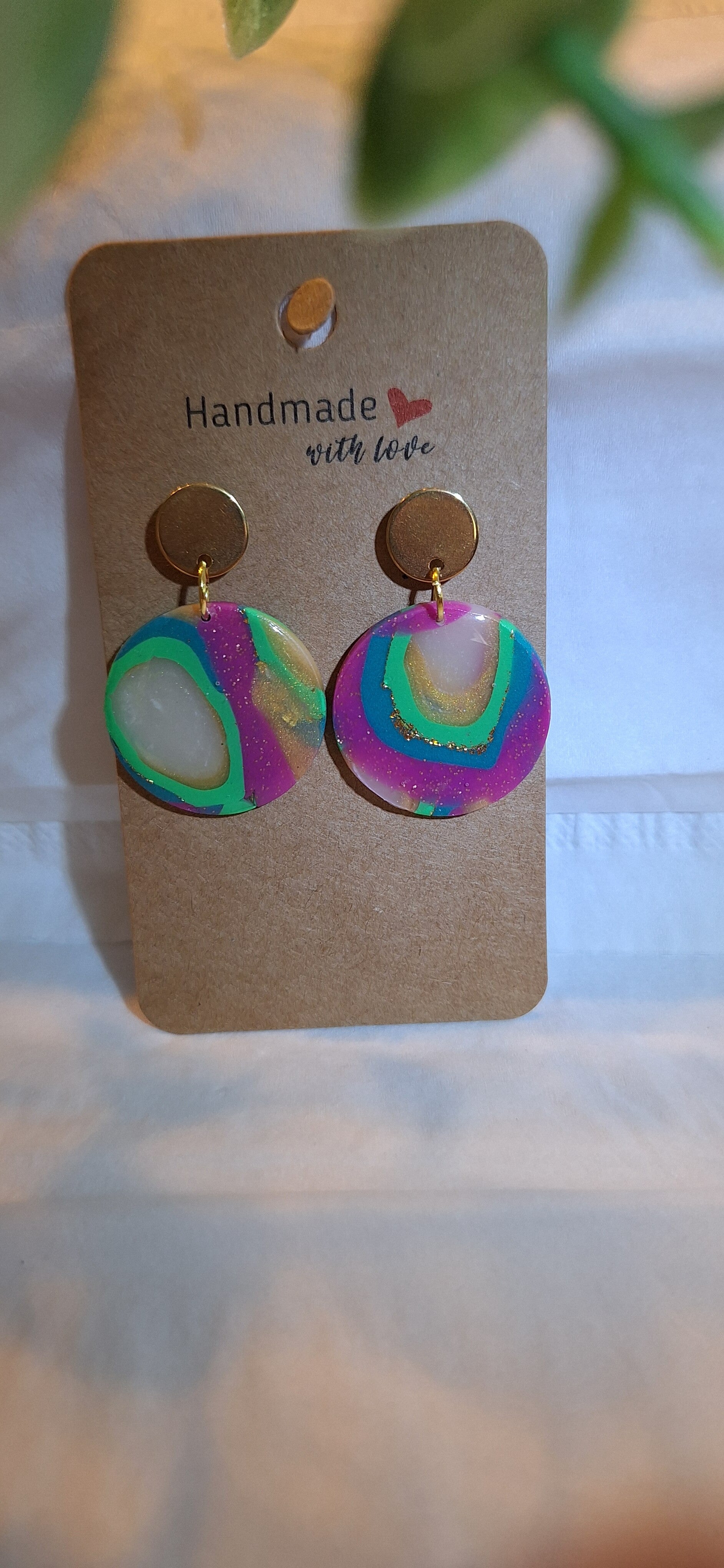 Handgemaakte oorbellen met polymeerklei in translucent. (doorschijnende klei)