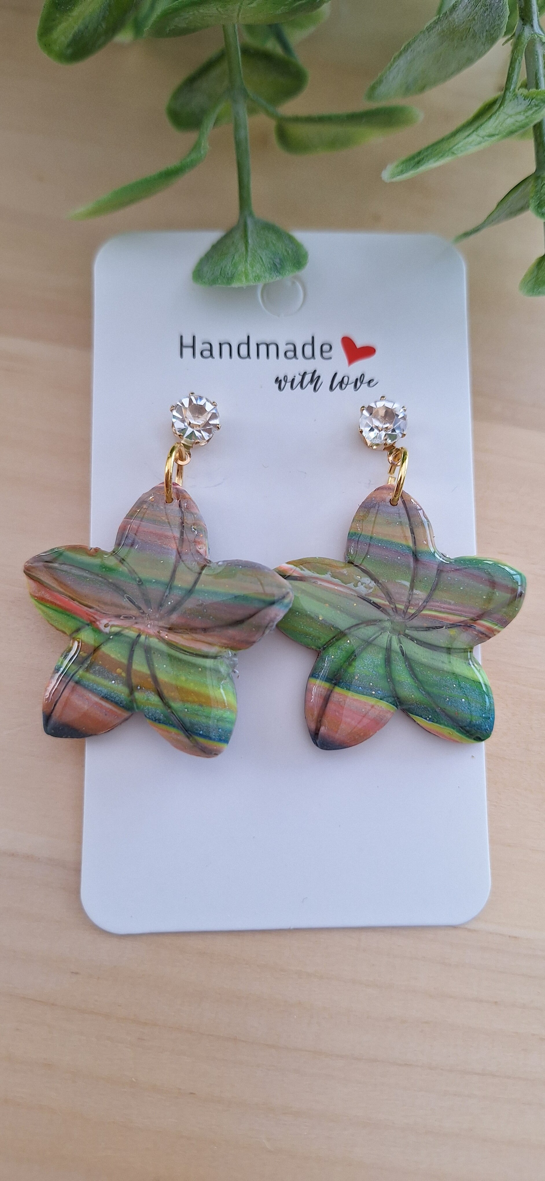 Handgemaakte oorbellen uit polymeerklei: multicolor bloem
