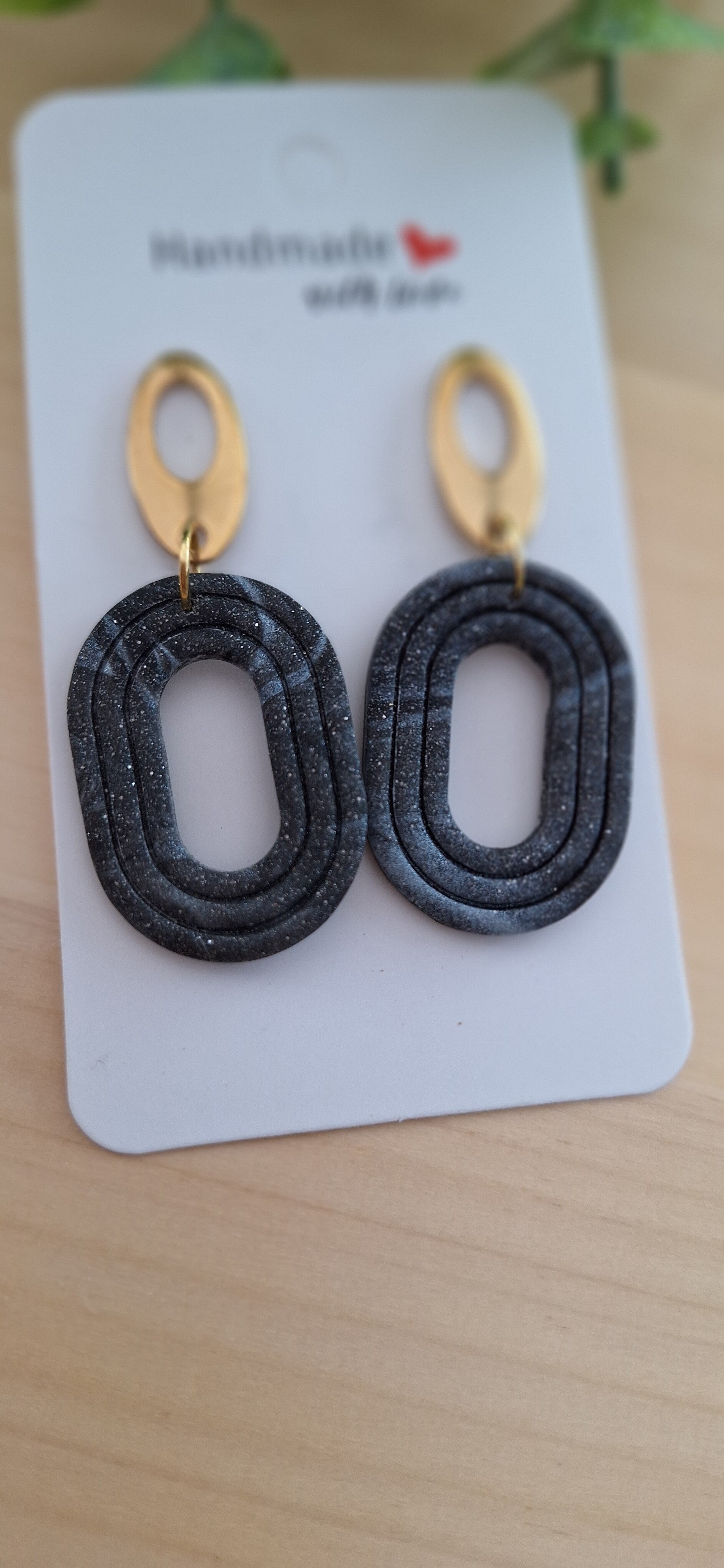 Handgemaakte oorbellen uit polymeerklei: zwart ovaal