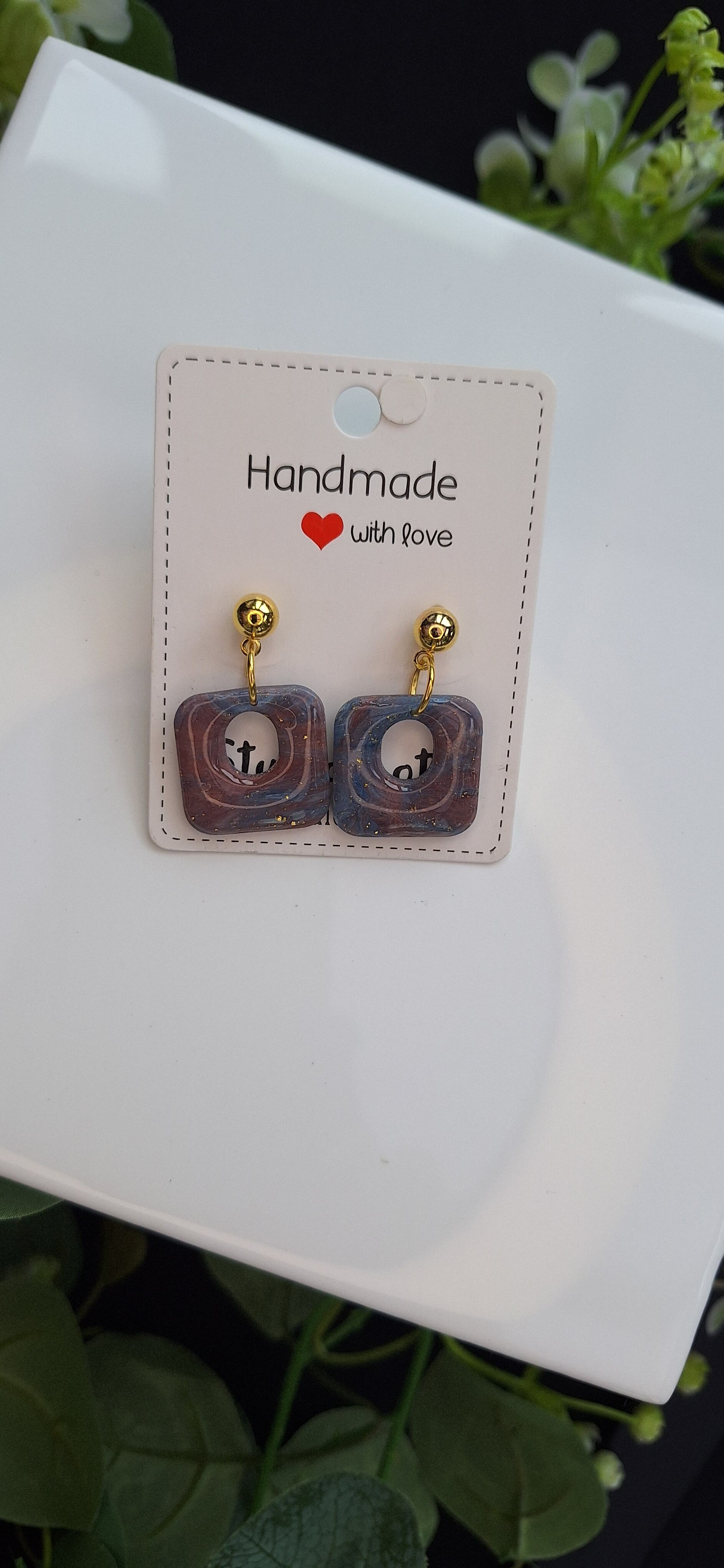 Zelfgemaakte oorbellen uit polymeerklei: multicolor met ronde steker.