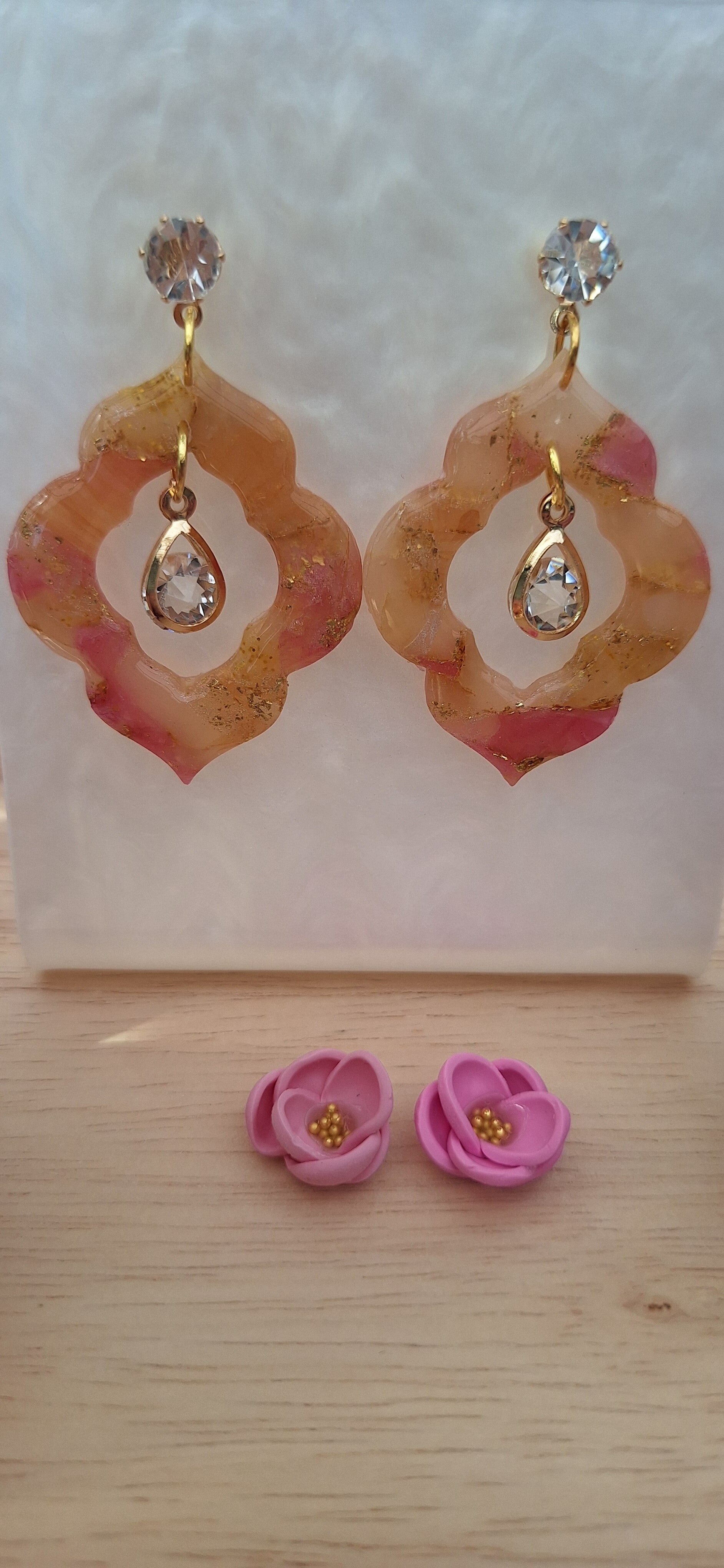 Handgemaakte oorbellen uit polymeerklei: met zirkoon steker.