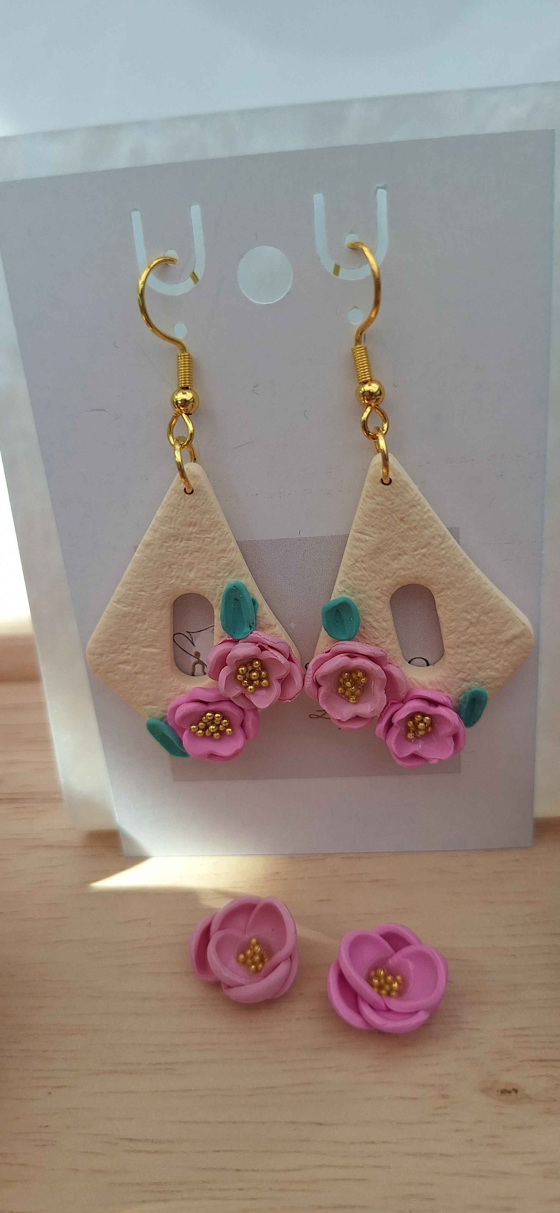 Handgemaakte oorbellen uit polymeerklei: Met handgemaakte bloemetjes en hanger
