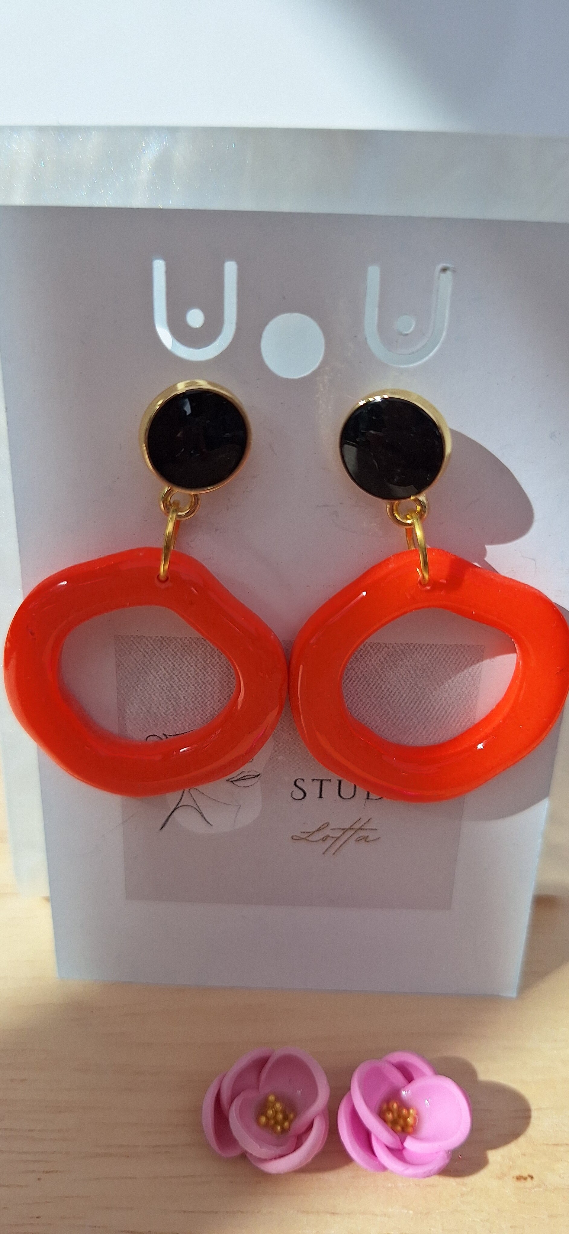 Handgemaakte oorbellen uit polymeerklei: Fluo oranje