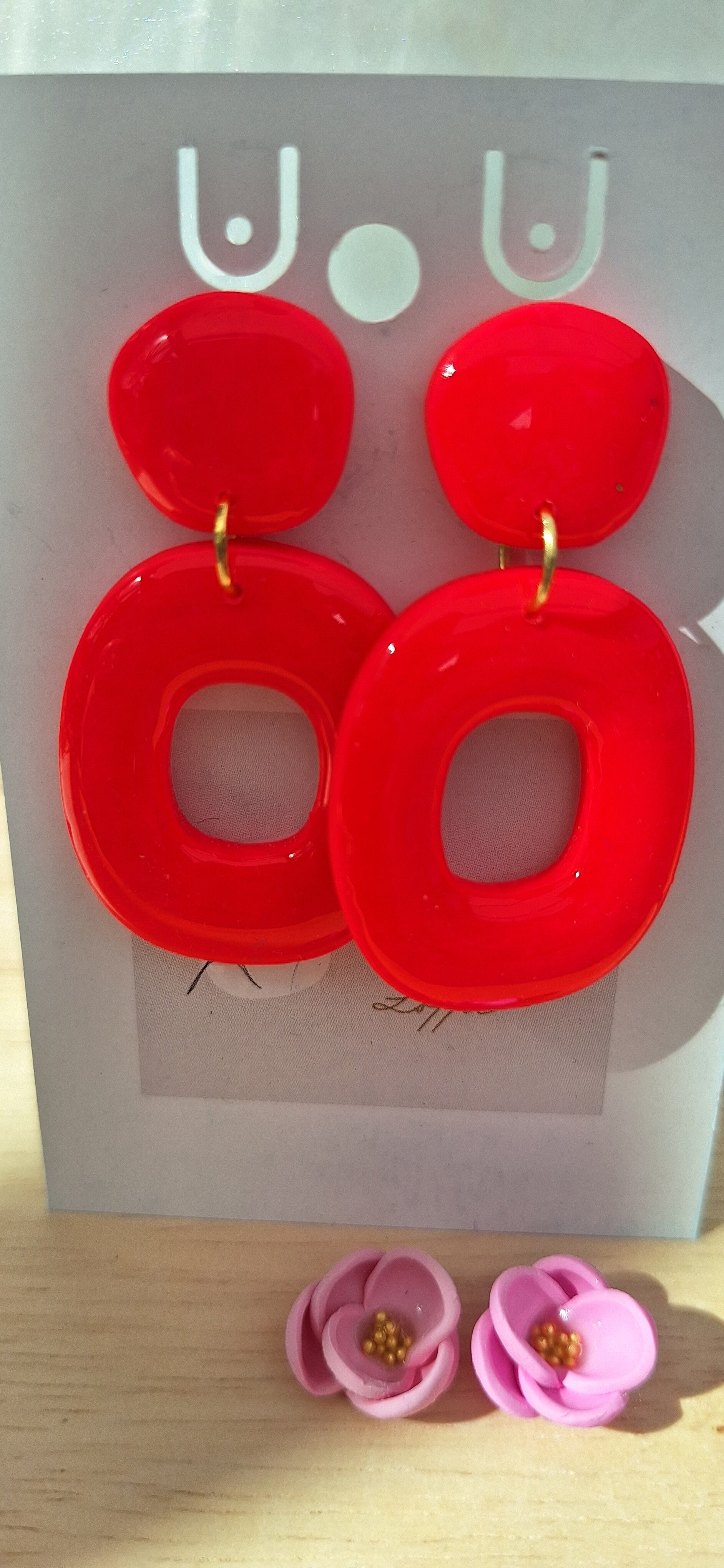 Handgemaakte oorbellen uit polymeerklei: Fluo roze